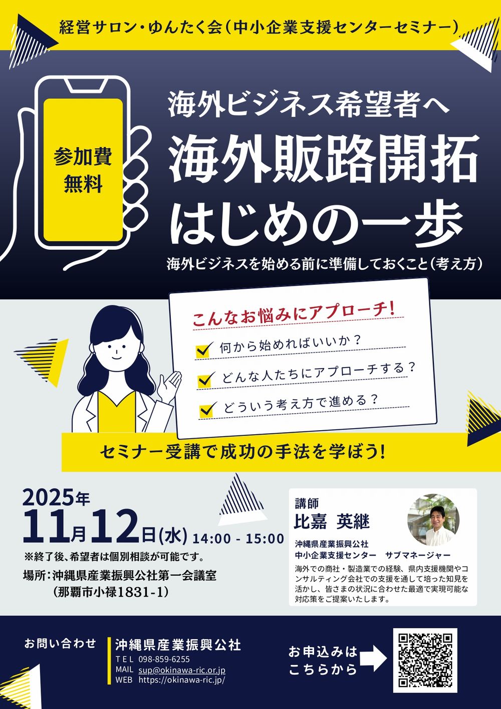 【第 4 回】経営サロン・ゆんたく会(中小企業支援センターセミナー)はじめての海外ビジネス講座 ~海外販路開拓 – はじめの一歩~