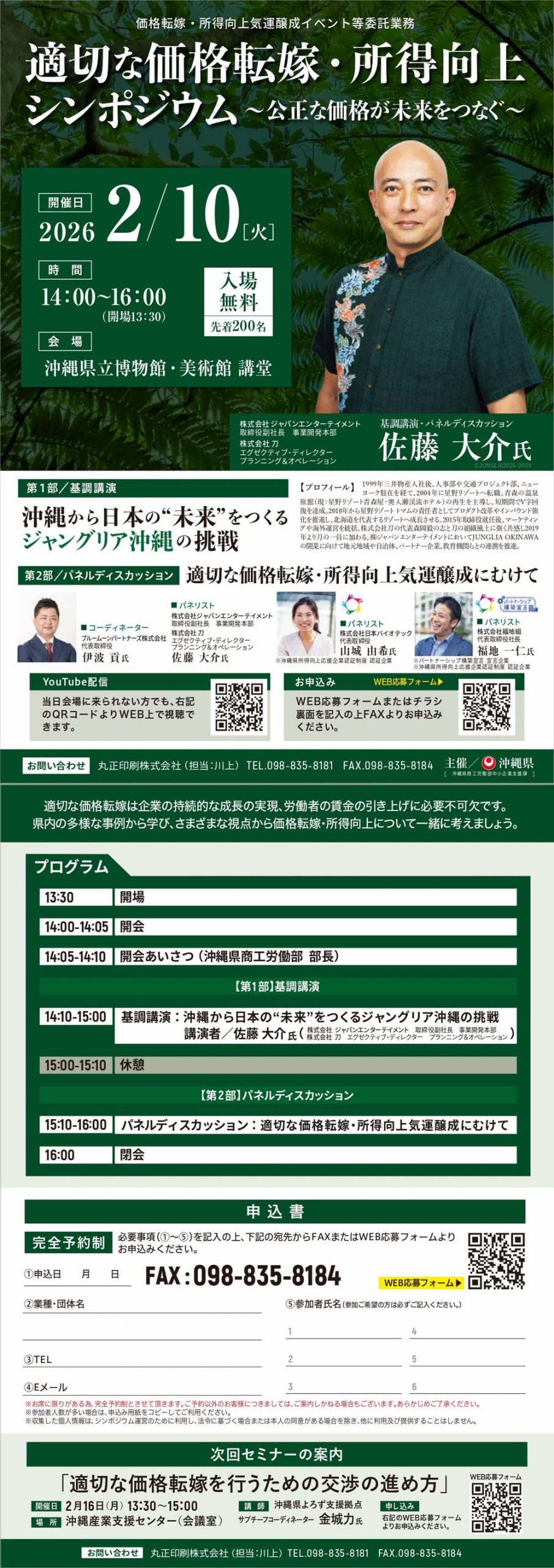 【沖縄県主催】適切な価格転嫁・所得向上シンポジウム(2月10日開催)