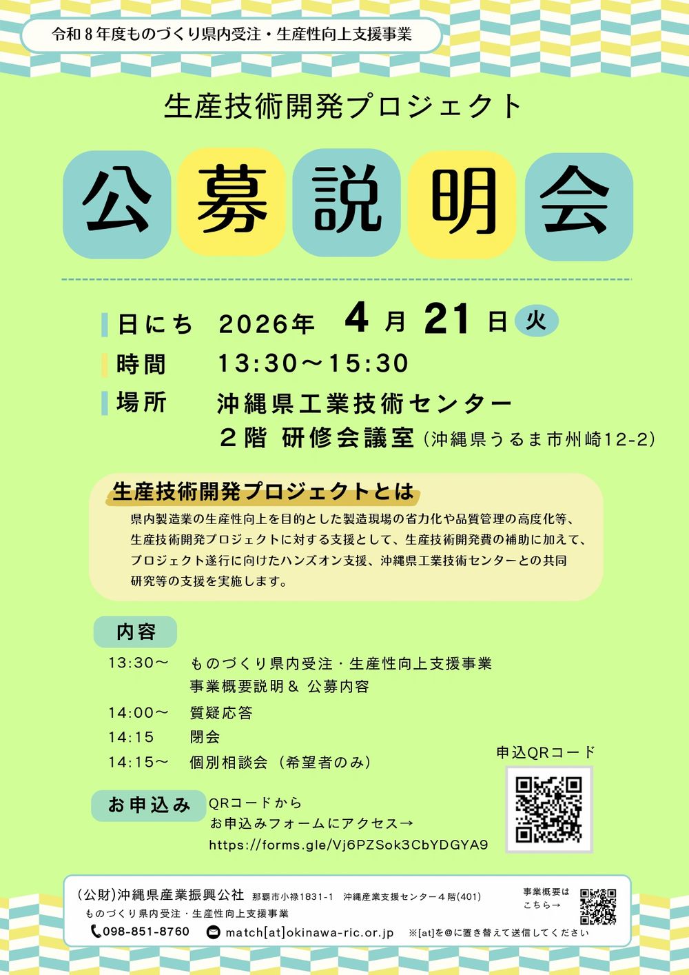 | 開催場所 | 沖縄県工業技術センター 2F 研修・会議室 (うるま市洲崎 12-2) |